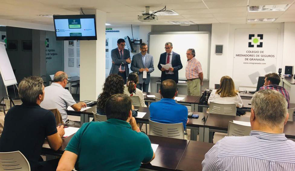 Enrique J. Pérez (Vicepresidente del Colegio) y Juan Bautista Meseguer (Vocal de Formación y Vocal de Peritos) abrieron la cita, saludando a los asistentes y agradeciendo a Plus Ultra su predisposición para hacer posible la celebración de la jornada, en la cual se llevaba trabajando desde hacía bastantes fechas. Por parte de la entidad aseguradora participaron Alberto Bartolomé (Director de Zona para Andalucía Oriental y Murcia), Raúl Molina (Director de la Oficina de Granada) y Camilo Mudarra (Responsable Comercial).